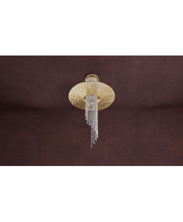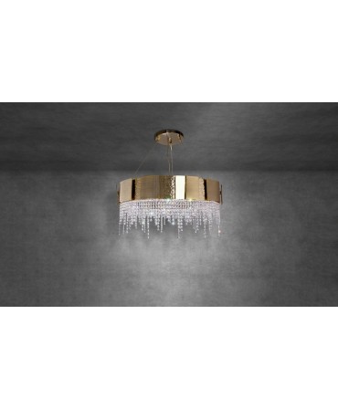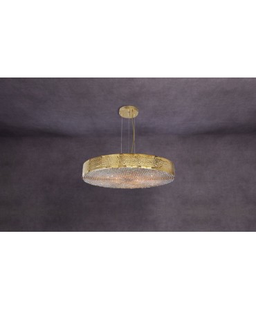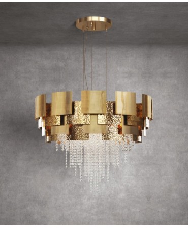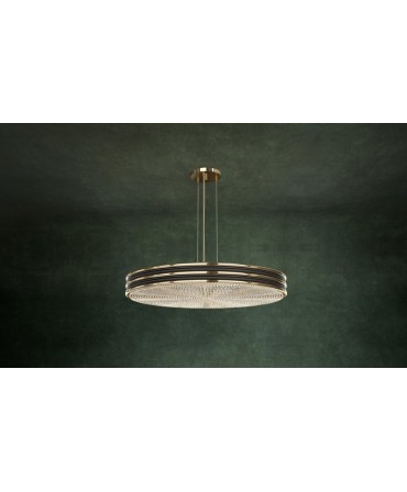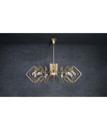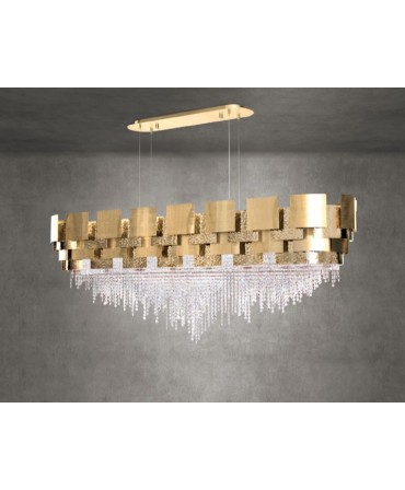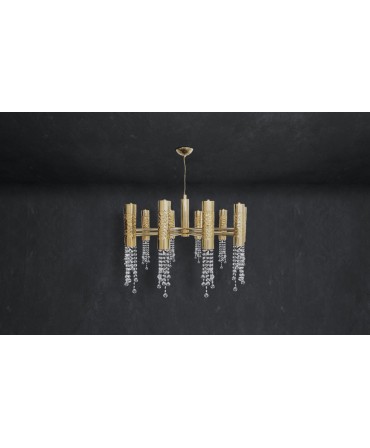 Candeeiro Mondrian com cristais e latão rectangular de 24 lampadas