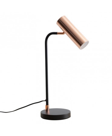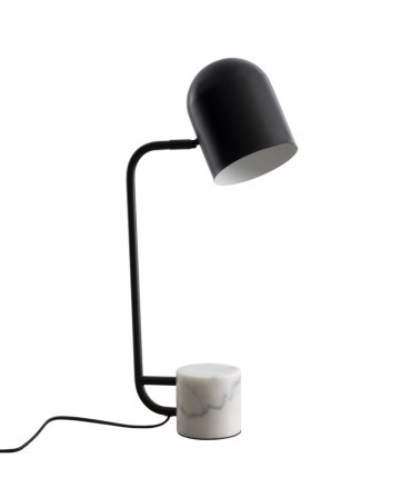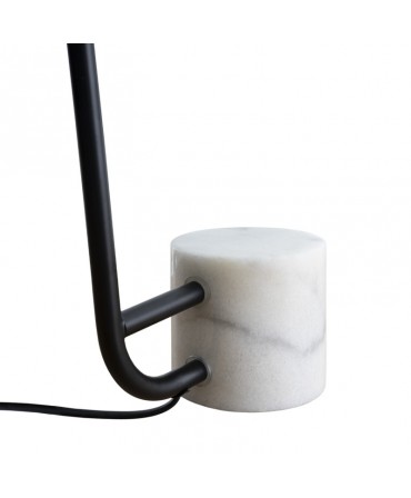 Candeeiro de mesa com estrutura em metal preto com base em mármore.