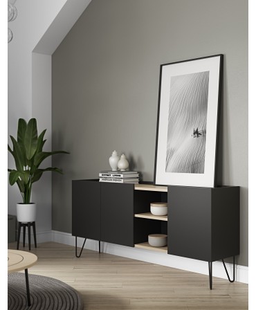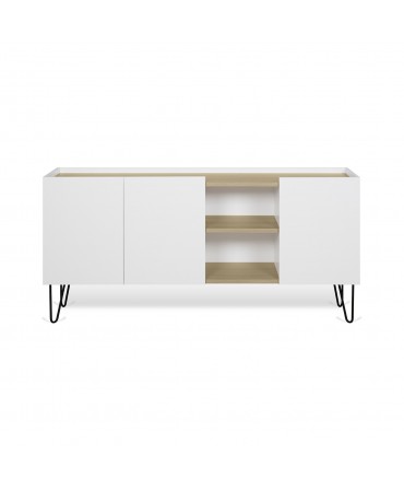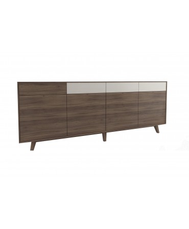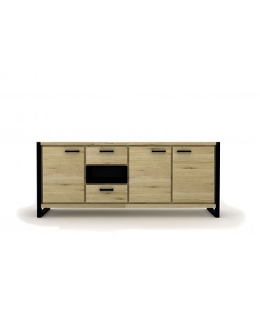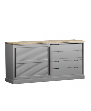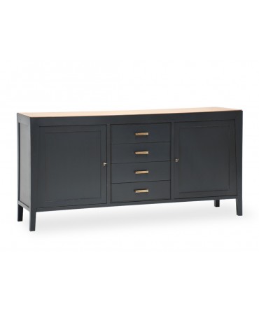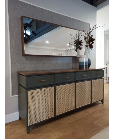 Composto por quatro gavetas e quatro portas em palhinha