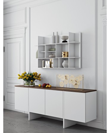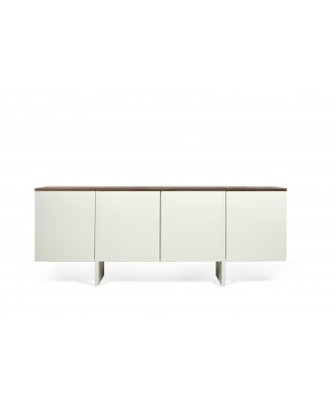 Estrutura e madeira maciça de tília com acabamento lacado branco mate e talha.