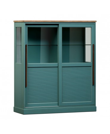 Armário com duas portas de correr e estrutura em madeira de carvalho.