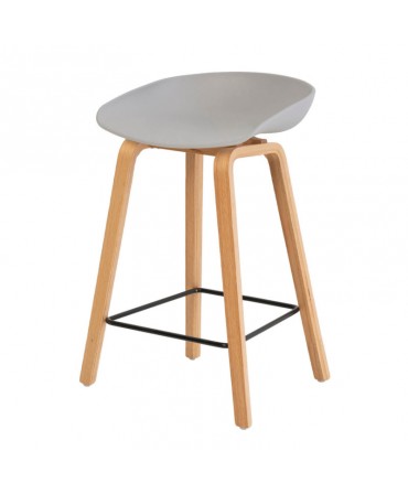 Banqueta com estofamento em poliéster efeito couro marrom com estrutura metálica.