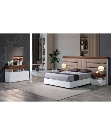 Estrutura em madeira maciça de tília com acabamento lacado branco mate e talha.