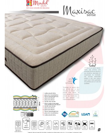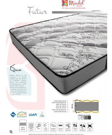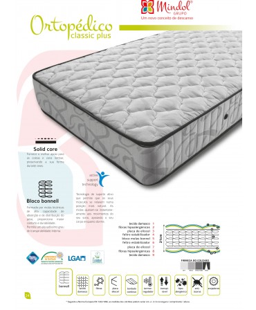 Combinação de Solid Core e Box Bonnell, com um periférico de eliocell de alta densidade, que dá uma maior área de conforto e maior firmeza ao colchão.