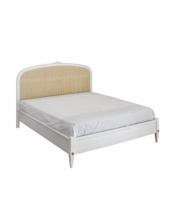 Cabeceira em palhinha natural. Estrutura em madeira maciça de tília com acabamento lacado branco mate e talha.
