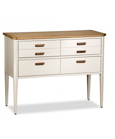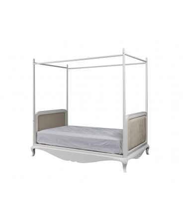 Estrutura em madeira maciça de tília e talha com acabamento lacado branco mate.