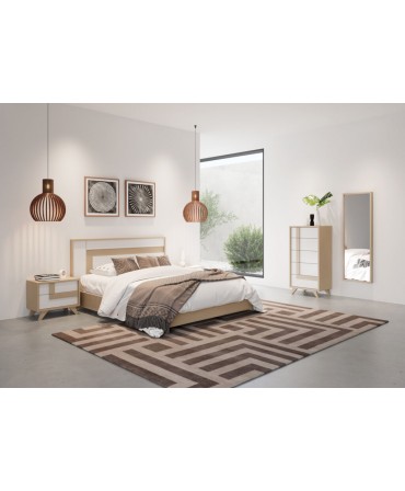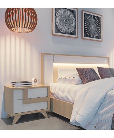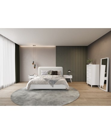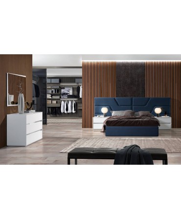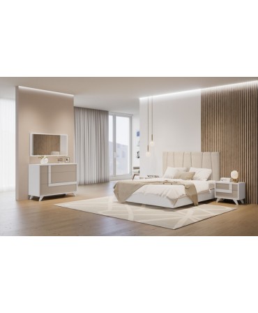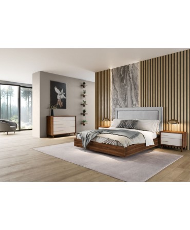 Quarto completo com cabeceira estofada e quarto em nogueira e lacado de branco