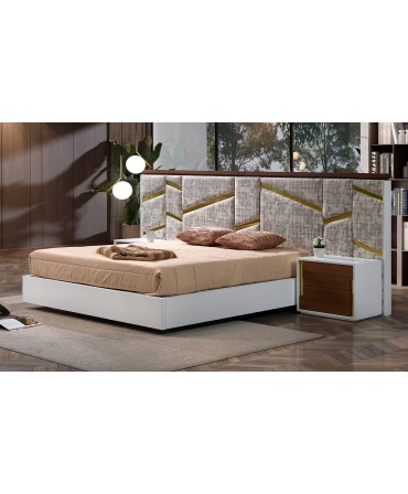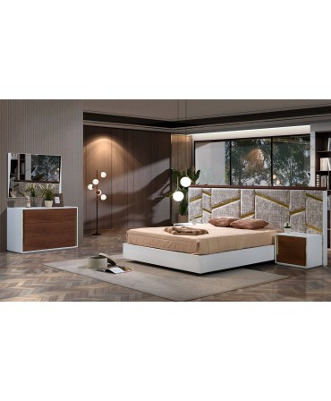 Quarto completo com cabeceira estofada e quarto em nogueira e lacado de branco