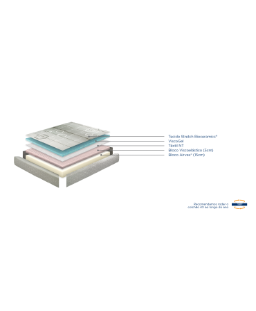 ViscoGel - Espuma viscoelástica com partículas de gel que se adapta na perfeição à forma e à temperatura do corpo. Caracteriza-se por possuir grande elasticidade e flexibilidade.