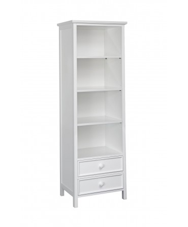 "Estante com geometria linear, característica pelo seu acabamento em madeira Mukali."