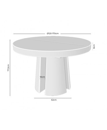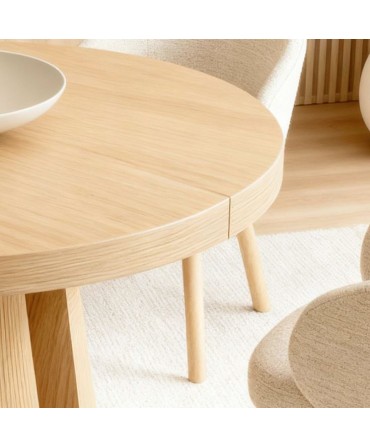 Mesa Redonda Extensível Marcella em carvalho com 120cm e extensão de 50cm