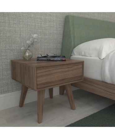 Mesa de Cabeceira Riscado em madeira de acácia.