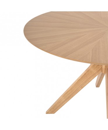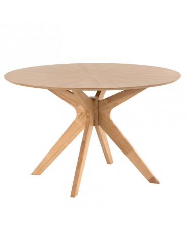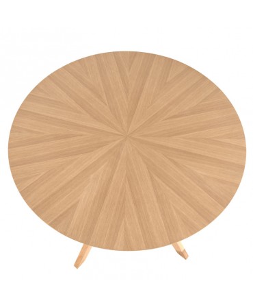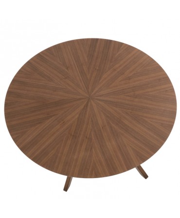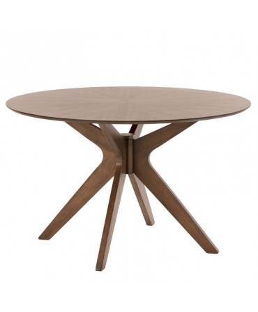 Mesa de refeições redonda em madeira de carvalho ou nogueira.