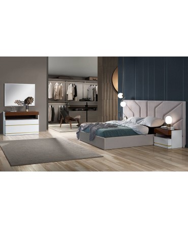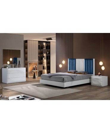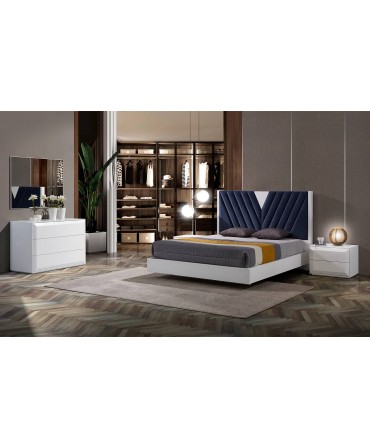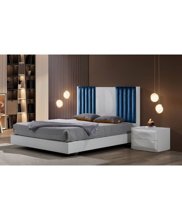 - Cama e cabeceira lacadas com pormenor estofado - 161x120x208cm (inclui estrado)