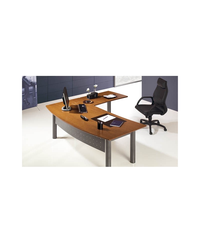 Secretária com alonga 992 x 611 e painel frontal metálico, tampo em madeira de Cerejeira e estrutura metálica pintada.