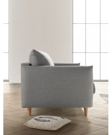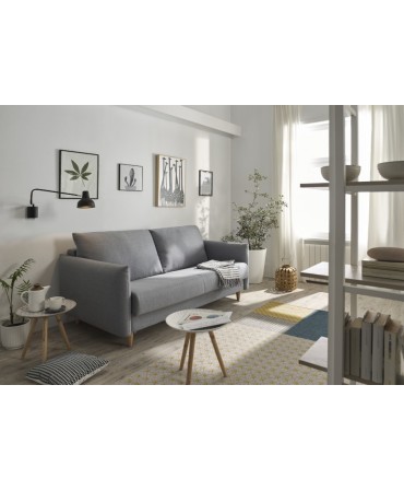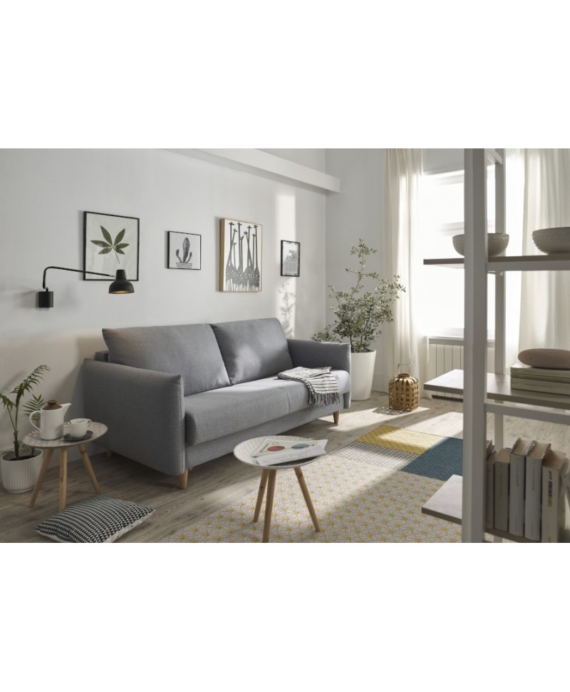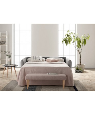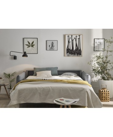 Sofá cama Milan com estrutura em madeira de pinho e aglomerado revestido a espuma.